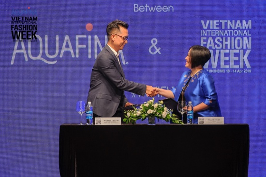 Sau phần phát biểu của đại diện hai bên, lễ kí kết hợp tác chính thức diễn ra trên sân khấu. Đây được xem là sự kiện vô cùng trọng đại, không chỉ đối với bản thân mỗi bên mà còn có ý nghĩa đặc biệt đối với tương lai của thời trang Việt Nam. Như bà Trang Lê đã chia sẻ, Tuần lễ Thời trang Quốc tế Việt Nam đã không còn là sự kiện của riêng một cá nhân, một tổ chức, với những giá trị đã kiến tạo, sự kiện này trở thành điểm hẹn văn hóa, nơi thời trang trở thành ngôn ngữ chung và kết nối những giá trị tốt đẹp.