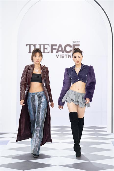 Đối lập với hai vị HLV còn lại, Siêu mẫu Minh Triệu và Hoa hậu Kỳ Duyên lựa chọn phong cách “cool ngầu” và năng động hơn. Siêu mẫu Minh Triệu khoác lên mình chiếc áo măng tô đầy quyền lực phối cùng chiếc quần jeans ống rộng và áo bra tối giản, toát lên vẻ “chất lừ” của phong cách GenZ chính hiệu.