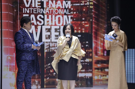 Trong cảm xúc bồi hồi, bà Trang Lê chính thức tuyên bố khai mạc Aquafina Tuần lễ Thời trang Quốc tế Việt Nam 2021.