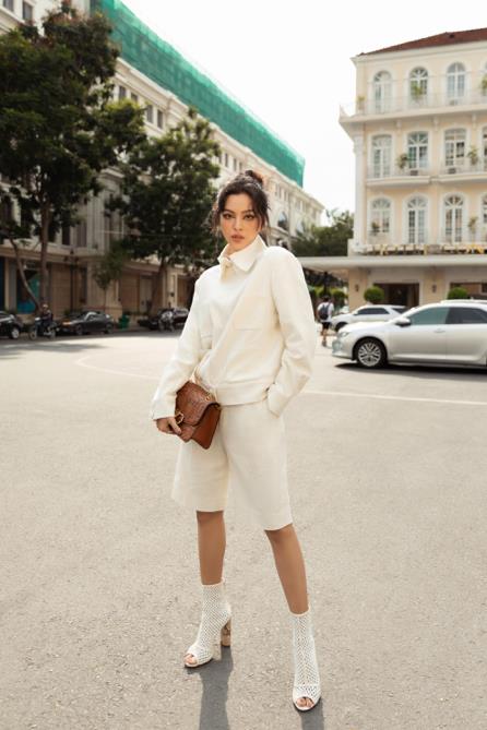 Hoa hậu Tiểu Vy và Fashionista Tú Hảo cũng là hai tín đồ của quần lửng bermuda. Nếu Tiểu Vy chọn một thiết kế màu vàng bắt mắt, thì Tú Hảo lại ghi điểm bởi cách mix match quần lửng cùng áo jacket trắng ton-sur-ton.
