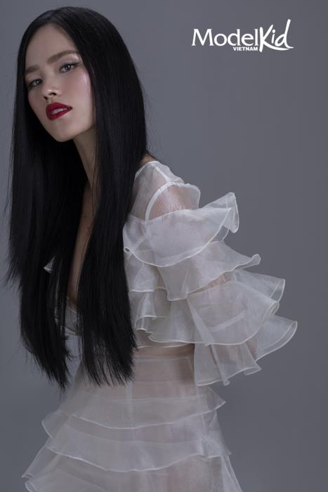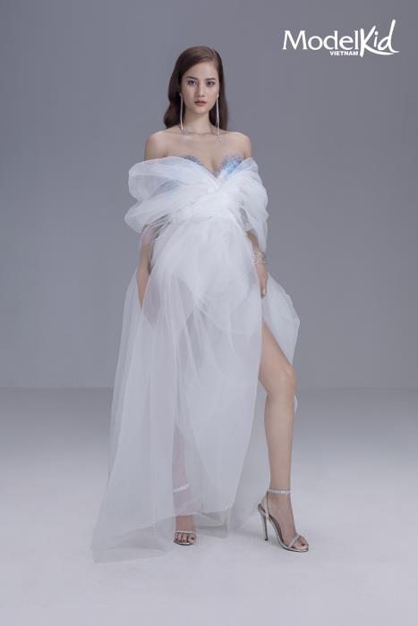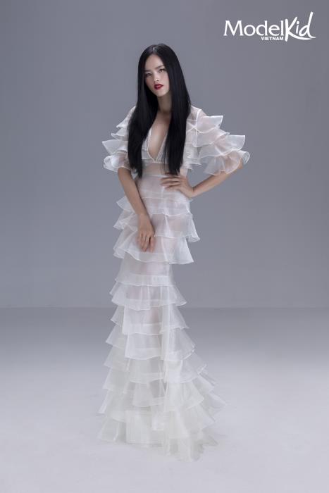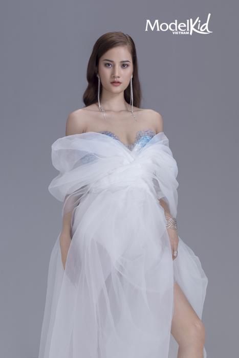 Nếu như Tuyết Lan gây ấn tượng ngay từ khoảnh khắc đầu bởi vẻ đẹp đậm chất Á Đông và ánh nhìn sắc lẹm trong bộ đầm ôm sát gợi cảm, đính kết những lớp vải organza xếp tầng mềm mại thì “cô em út” trong bộ tứ HLV lại vô cùng ngọt ngào, trẻ trung. Chọn cho mình phong cách công chúa nhưng Hương Ly không quên khoe đôi chân dài nuột nà thông qua chi tiết xẻ cao ấn tượng của thiết kế. Bên cạnh đó, Mâu Thủy với sự linh hoạt trong cách pose dáng cùng biểu cảm đầy cá tính đã mang đến sự cuốn hút bất tận trong những tấm ảnh. Cuối cùng, Quang Đại - nam HLV duy nhất cũng chứng tỏ vẻ bảnh bao, thanh lịch trong bộ suit trắng. Các vị HLV đã cùng tạo nên bộ ảnh đẳng cấp cho Model Kid Vietnam 2019.