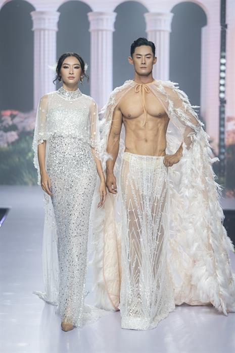 Ngoài ra, màn trình diễn của NTK Brian Võ còn có sự xuất hiện của Á hậu Mai Ngô trong vai trò first face. Người đẹp Lê Hoàng Phương – Top 5 Hoa hậu Hoàn vũ Việt Nam 2022 đảm nhận vai trò first face màn 02.