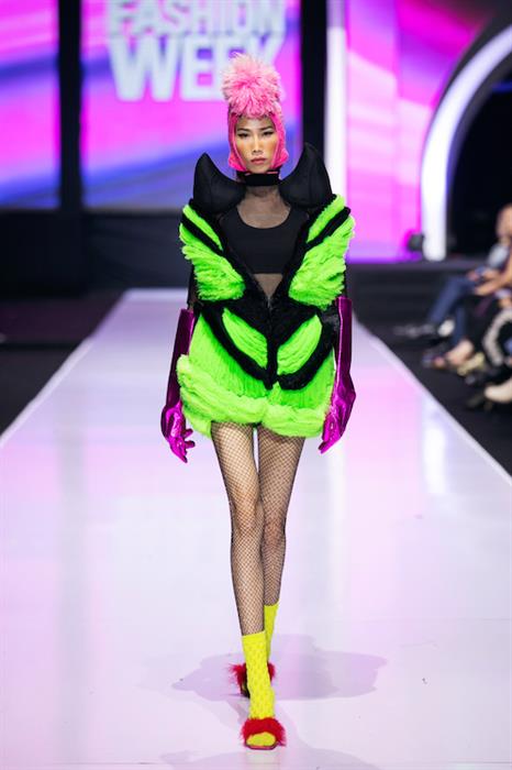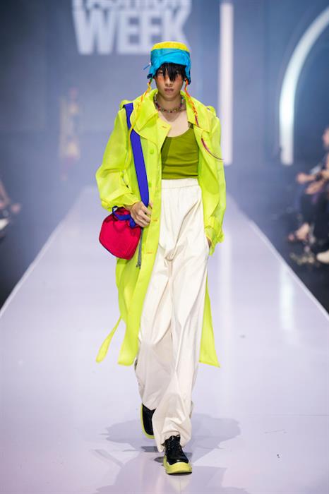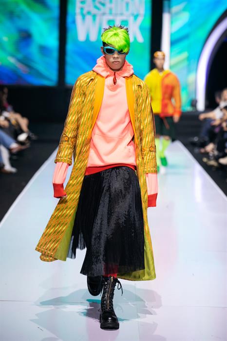 BST “Childhood Reminiscence” đã “chiêu đãi” giới mộ điệu hết bất ngờ này tới bất ngờ khác khi Nhà thiết kế mix&match những thiết kế quen thuộc thường ngày kết hợp màu tóc nổi bật và những đôi dép độc lạ nhưng vẫn hài hoà, thời trang và đúng tinh thần trẻ trung. NTK gạo cội người Indonesia – Priyo Oktaviano đã đưa khán giả du hành về miền ký ức tuổi thơ đầy tươi vui, truyền tải năng lượng tích cực, trẻ trung thông qua ngôn ngữ thời trang và sự dàn dựng tài tình của mình.