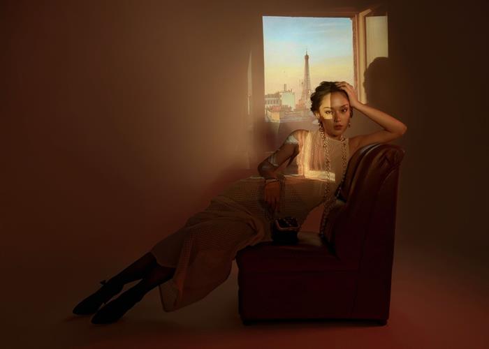 Bộ hình là sự kết hợp giữa không gian và thời trang, chỉ tại Studio với 1 chiếc máy chiếu, cô đã đưa chúng ta thời Paris – kinh đô thời trang hoa lệ của Châu Âu mà không cần bất cứ chuyến đi xa nào.