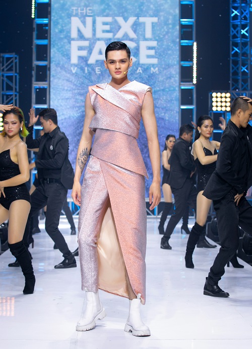 Đến với thử thách quyết định cuối cùng – ghi hình video clip giới thiệu Quán quân The Next Face Vietnam 2021, vẫn là tiêu chí khoe được những thế mạnh trên cơ thể, NTK Lý Giám Tiền đã giúp top 3 “chiến binh” xuất sắc nhất Stephen Nguyễn, Y Hạ và Shinsa Phạm thật sự tỏa sáng trong những mẫu trang phục lộng lẫy. Lấy tone màu bạc và cam làm chủ đạo với những đính kết lấp lánh, NTK Lý Giám Tiền đã giúp Shinsa Phạm và Y Hạ khoe khéo được đường cong cơ thể cùng đôi chân dài trong thiết kế bodysuit, đồng thời cũng làm tôn lên sự mạnh mẽ của Stephen Nguyễn với chiếc quần dài và áo croptop lấy ý tưởng từ những bộ suit nam tính. Chưa dùng lại ở đó, NTK Lý Giám Tiền còn khéo léo đưa vào những mẫu váy được thiết kế với phần đuôi váy dài giúp mang đến những hiệu ứng cực kỳ bắt mắt trong phần trình diễn của các thí sinh.