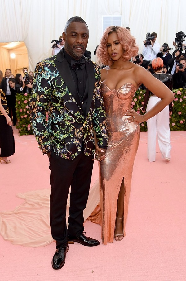 Cặp đôi Idris Elba và Sabrina Dhowre cùng chọn thương hiệu “Nữ Hoàng đầu rắn” để trẩy hội tại Met năm nay.