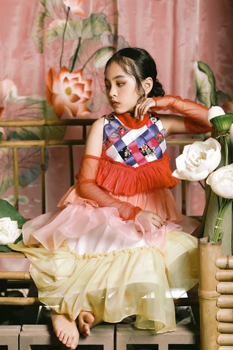 Mẫu nhí Võ Ngọc Trâm Anh trong bộ ảnh giới thiệu BST Thị của NTK Huỳnh Thức.