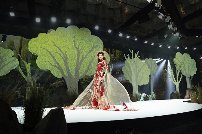 Hoa hậu Khánh Vân xuất hiện trong vai trò first-face của BST đồng thời là nàng thơ của Tuần lễ thời trang với hình ảnh nữ thần rừng. Bộ đầm dạ hội màu đỏ lộng lẫy, được đính kết cầu kì cùng cặp sừng hươu được tạo hình tinh xảo, mô phỏng hình ảnh nữ thần của rừng. Mỗi bước đi của Khánh Vân được cộng hưởng bởi công nghệ 3D mapping độc đáo, giúp biến khán phòng thành một khu rừng còn Khánh Vân chính là chủ nhân của nó. Người đẹp cũng chính là nàng thơ giúp gửi gắm mong mỏi của ekip chương trình có thể hóa phép giúp những khu rừng tươi tốt trở lại, trao đi thông điệp nhân văn về bảo vệ rừng, bảo vệ thiên nhiên.