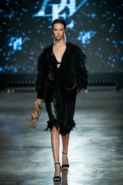 Xuyên suốt toàn bộ màn trình diễn, không khó để cảm nhận được vẻ đẹp hoa lệ mà thành phố toát ra cũng như âm hưởng đậm nét của thập niên 80, qua phần cầu vai độn trên chiếc áo khoác ngắn, chiếc lông vũ đính trên đường viền áo, sợi tassel đung đưa theo nhịp bước, và chân váy được xếp nếp cầu kỳ. Một Sài Gòn hoa lệ với những cuộc vui xuyên màn đêm, qua mắt Devon Nguyễn, đã được tái hiện lại theo cách thức mỹ miều và sống động như thế.