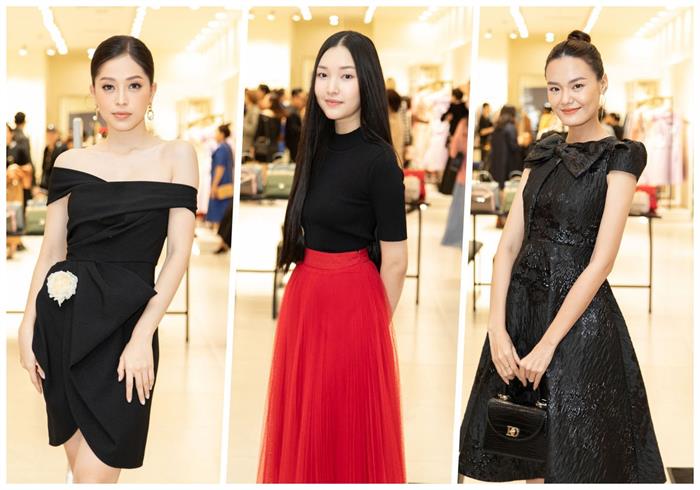 Tại đây, Diễm My hội ngộ NSND Lan Khanh. NSND Lan Khanh chọn diện chiếc váy màu đen với chất liệu gấm với hoạ tiết in chìm dập nổi. Thiết kế có phần nơ to bản làm điểm nhấn. Thời gian gần đây, NSND Lê Khanh chọn diện nhiều thiết kế mới của Đỗ Mạnh Cường. Chị nói yêu thích sự đơn giản, tinh tế và tính ứng dụng cao của trang phục.