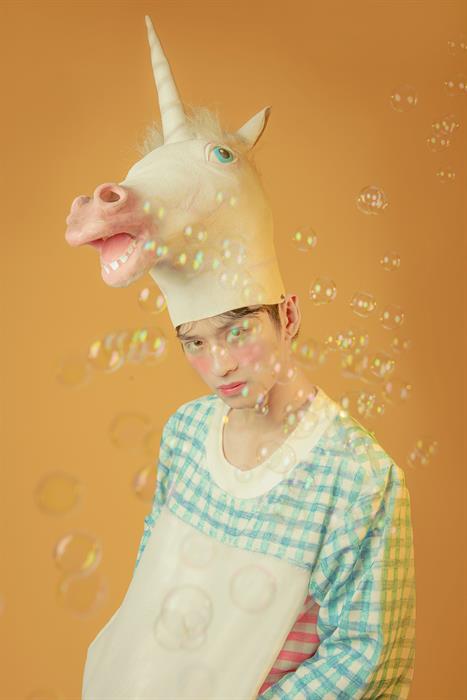 Đây là bộ sưu tập thời trang tốt nghiệp của NTK Nguyễn Phương Thảo, được Minhnhon lựa chọn vì trùng với ý tưởng của anh, đó là những mảng màu sắc đặc trưng của hoạt hình, những hoạ tiết trên quần áo rất độc đáo, chi tiết và công phu, với những phụ kiện là những món đồ chơi thân quen của tuổi thơ. “Layout makeup cũng được chị Huong Na Nguyen thể hiện rất rõ ý tưởng mà tôi mong muốn, đó là phải có những hình gắn lên mặt là những biểu tuọng hoạt hình thân thuộc như :lego, mickey, minion. Tôi muốn mọi người thấy được giấc mơ của tôi về màu sắc và những gợi nhớ của tôi vè tuổi thơ là chơi bóng bóng, là bắn pháo bông khi ngày Tết, là uống trộm những chai nước có ga mà mẹ giấu đi, là ước mơ chiến thắng trong những trò chơi ”… Minhnhon chia sẻ thêm.