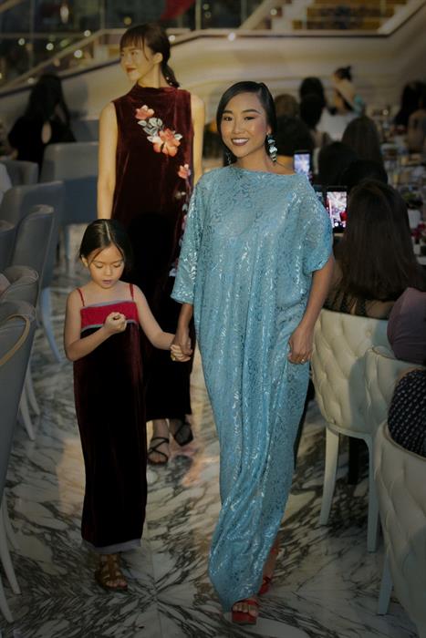 Mới đây, Đoan Trang và con gái gây bất ngờ khi trở thành người mẫu mở màn cho show diễn của nhà thiết kế Li Lam. Giọng ca Tóc hát khoe vẻ đẹp nền nã trong thiết kế váy xanh ngọc được cách điệu lạ mắt. Nữ ca sĩ nắm tay con gái trình diễn trong sự cổ vũ của các khách mời.