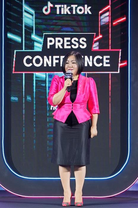 Bà Trang Nguyễn, Đại diện TikTok Việt Nam phát biểu tại sự kiện họp báo