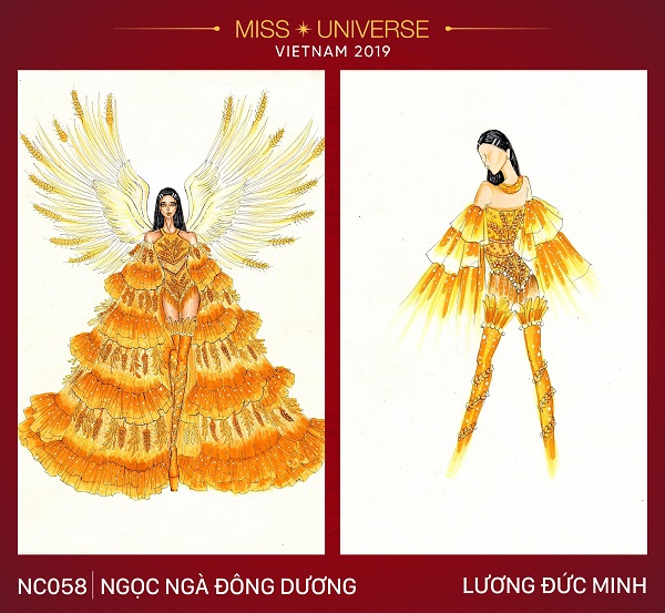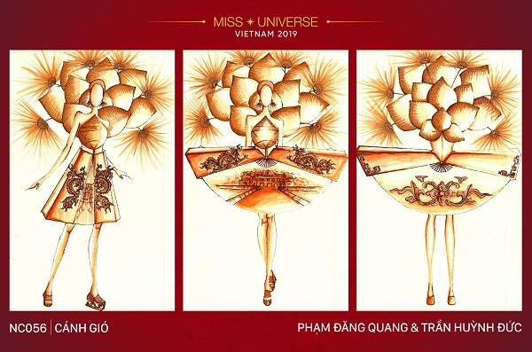 Mẫu thiết kế “Cánh Gió” của cặp đôi Phạm Đăng Quang & Trần Huỳnh Đức (sinh năm 1985, 1996, Tiền Giang) lấy cảm hứng từ những chiếc quạt tay truyền thống được cách điệu hiện đại thông qua hình ảnh chiếc yếm đào Việt Nam. Tông màu vàng làm chủ đạo với áo yếm được thiết kế từ chiếc quạt nan “dân dã” kết hợp cùng quạt lụa cung đình “sang trọng” ở phần váy, có thể tạo hiệu ứng khi trình diễn. Những chiếc quạt nan lá được đan xếp thành hình hoa sen – quốc hoa của Việt Nam làm phụ kiện phía sau tạo nét độc đáo cho trang phục. Qua đó thiết kế “Cánh Gió” muốn gửi gắm đến những tinh hoa văn hóa truyền thống với thông điệp về việc bảo tồn, gìn giữ làng nghề làm quạt thủ công & đồng thời giới thiệu đến bạn bè thế giới thông qua cuộc thi Miss Universe.