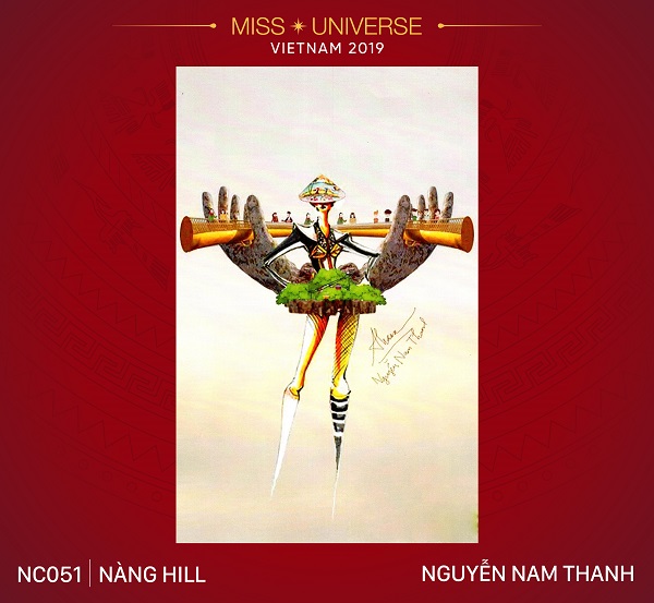 Cầu Vàng trên đỉnh Bà Na Hill ở Đà Nẵng là điểm đến du lịch nổi tiếng của Việt Nam trong năm vừa qua, không chỉ là niềm tự hào của người dân Đà Nẵng mà đây còn là công trình kiến trúc vươn tầm thế giới, khẳng định trí óc sáng tạo của người Việt Nam. Đó là lý do mà Nguyễn Nam Thanh (sinh năm 1995, Phú Yên) quyết định lấy ý tưởng này để vẽ thành bài thi “Nàng Hill”. Tuy cũng có nhiều bài thi khác sử dụng ý tưởng Cầu Vàng nhưng “Nàng Hill” tạo sự khác biệt bởi sự tinh tế trong từng chi tiết và tôn vinh vóc dáng người trình diễn.