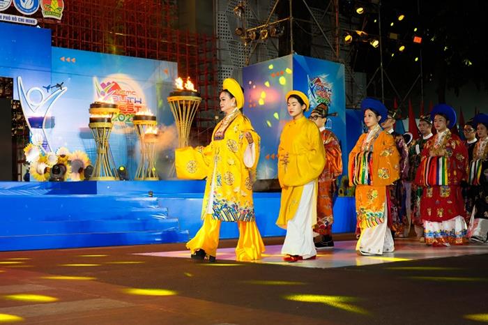 Đây không chỉ là sân khấu của những bộ Việt phục lộng lẫy, mà còn là nơi mỗi bước chân trên sàn diễn đều khẳng định một tuyên ngôn mạnh mẽ: thế hệ trẻ hôm nay không chỉ kế thừa di sản, mà còn viết tiếp câu chuyện văn hóa theo cách của chính mình. Khoảnh khắc hàng nghìn các bạn tình nguyện viên trong trang phục truyền thống Việt Nam cùng thực hiện các động tác trên nền ca khúc Một Vòng Việt Nam thực sự mang đến một cảm giác đầy tự hào.