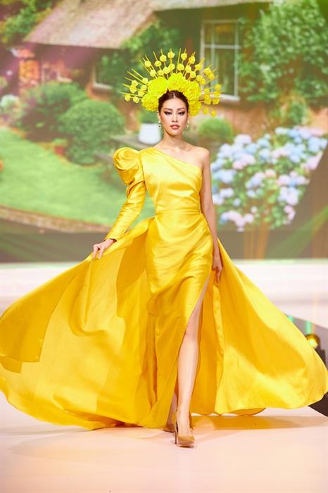 Sang phần trình diễn thứ hai, Hoa hậu Khánh Vân diện nguyên bộ đầm màu vàng rực, cùng mũ to đính hoa giúp tôn vinh vóc dáng và chiều cao nổi bật của đương kim Hoa hậu Hoàn vũ Việt Nam. Trong hậu trường chuẩn bị lên sàn diễn, Hoa hậu Khánh Vân còn ngẫu hứng cùng Á hậu, Siêu mẫu Võ Hoàng Yến thực hiện những tấm hình theo concept “Chị chị em em”. Nếu như Khánh Vân rạng rỡ cùng màu áo vàng thì Võ Hoàng Yến đầy quyền lực, thần thái trong bộ đầm hồng ôm body. Cả hai sẽ cùng nhau xuất hiện trong chương trình “Tôi là Hoa hậu Hoàn vũ Việt Nam 2022”, với Khánh Vân trong vai trò Host và Võ Hoàng Yến trong vai trò Giám khảo truyền hình thực tế, Thành viên Hội đồng giám khảo Hoa hậu Hoàn vũ Việt Nam 2022.