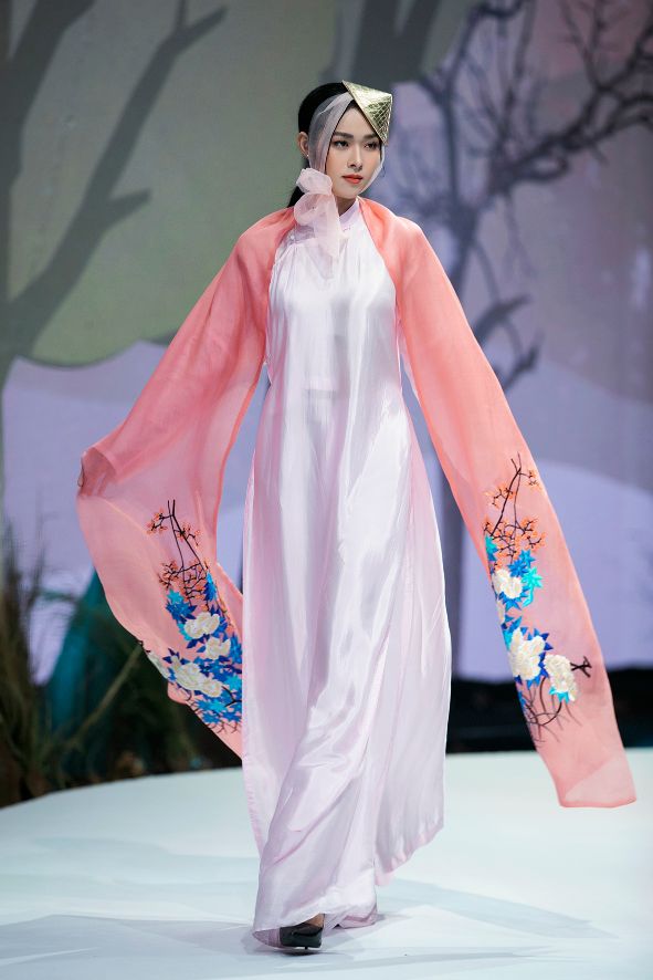Diễn viên Diệp Bảo Ngọc gây bất ngờ khi xuất hiện trong vai trò vedette với chiếc áo dài duyên dáng mang màu sắc ngọt ngào, dịu dàng. Nữ diễn viên cùng các mẫu nhí của Xuân Lan’s Academy như cặp đôi first face – Trâm Anh & Nguyễn Hải Anh, mẫu nhí Nguyễn Minh Anh,… gửi đến bộ sưu tập “Hoa Tây Bắc” của Vũ Việt Hà trong không gian sân khấu vô cùng lãng mạn nhờ sự hỗ trợ từ công nghệ cảm ứng tương tác và công nghệ 3D Mapping độc đáo, góp phần giúp màn trình diễn trở nên trọn vẹn và đong đầy cảm xúc.