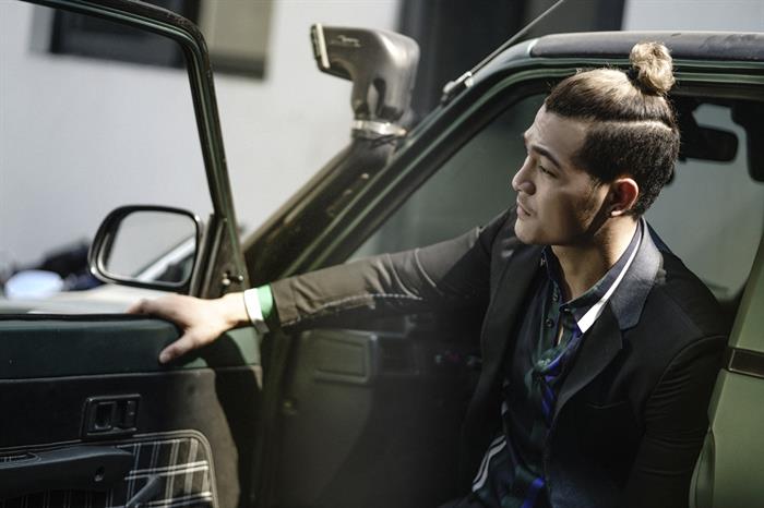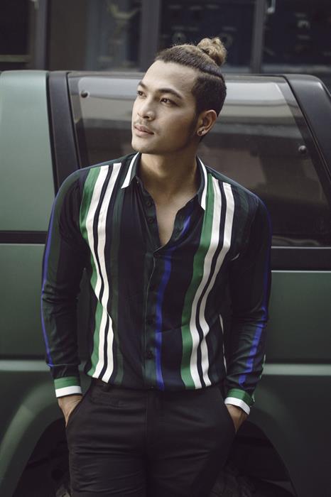 “Gã giang hồ” của Lôi báo không còn vẻ dữ dằn, máu lạnh mà hoàn toàn lột xác với hình ảnh một quý ông lịch thiệp, cuốn hút và vô cùng hiện đại. Vũ Tuấn Việt diện vest cùng sơ mi tối màu kết hợp với mái tóc undercut vuốt ngược làm nổi bật nét phong trần đầy cuốn hút.