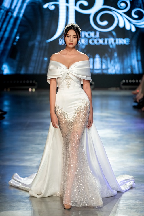 Kết thúc show diễn, hoa hậu Tiểu Vy xuất hiện trong một thiết kế là tổng hoà những chi tiết, kỹ thuật mà NTK Phạm Đăng Anh Thư đã thể hiện trong bộ sưu tập lần này.