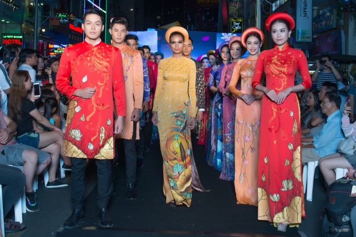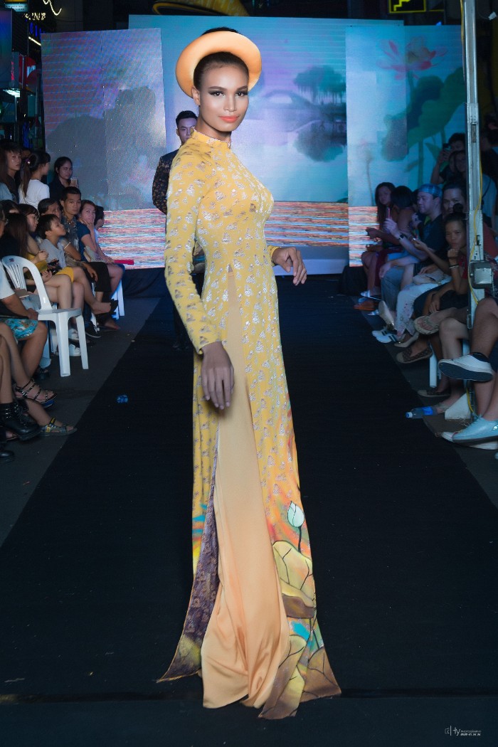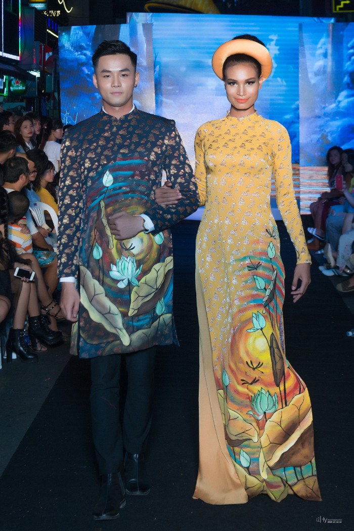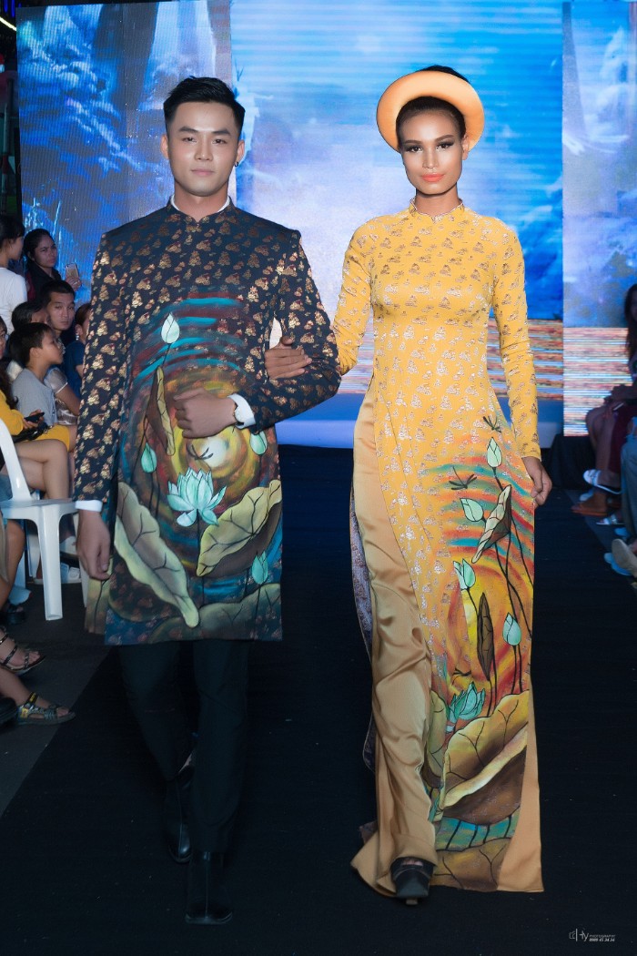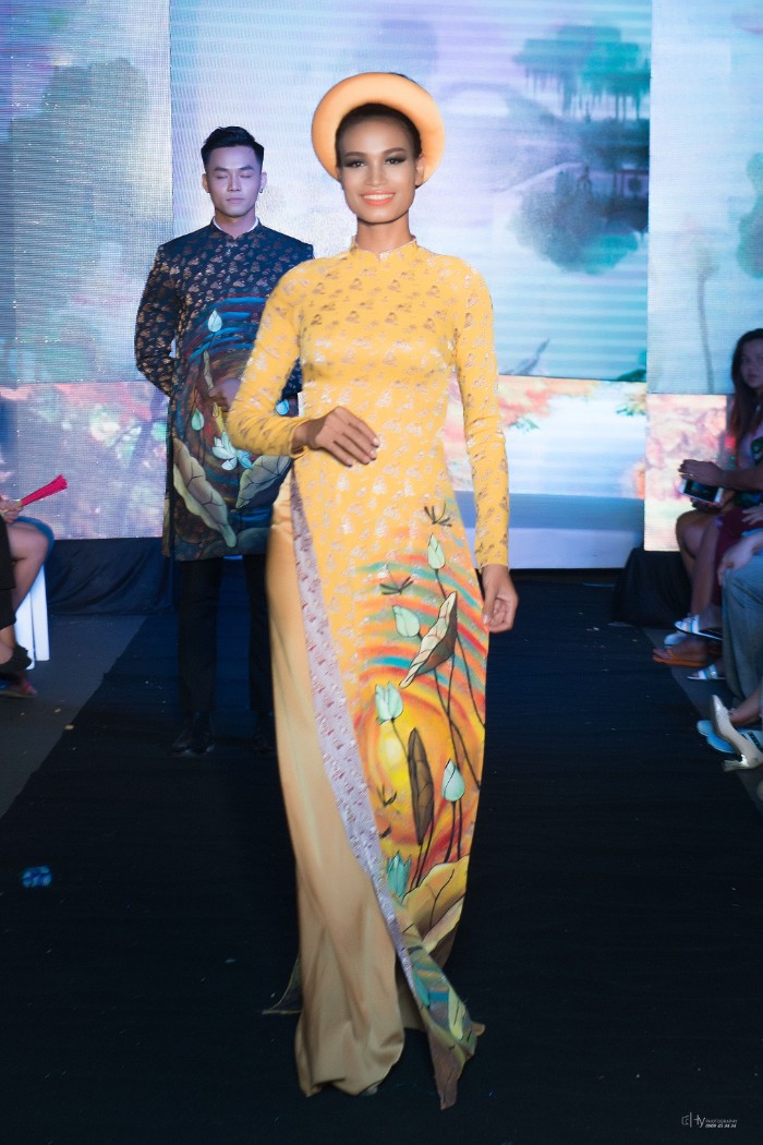 Góp mặt trong đêm Thời trang đặc biệt này cùng với NTK Việt Hùng còn có NTK Hoài Sang trong trang phục Áo dài cách điệu và NTK Tommy Nguyễn trong những bộ trang phục Dạ hội lộng lẫy.