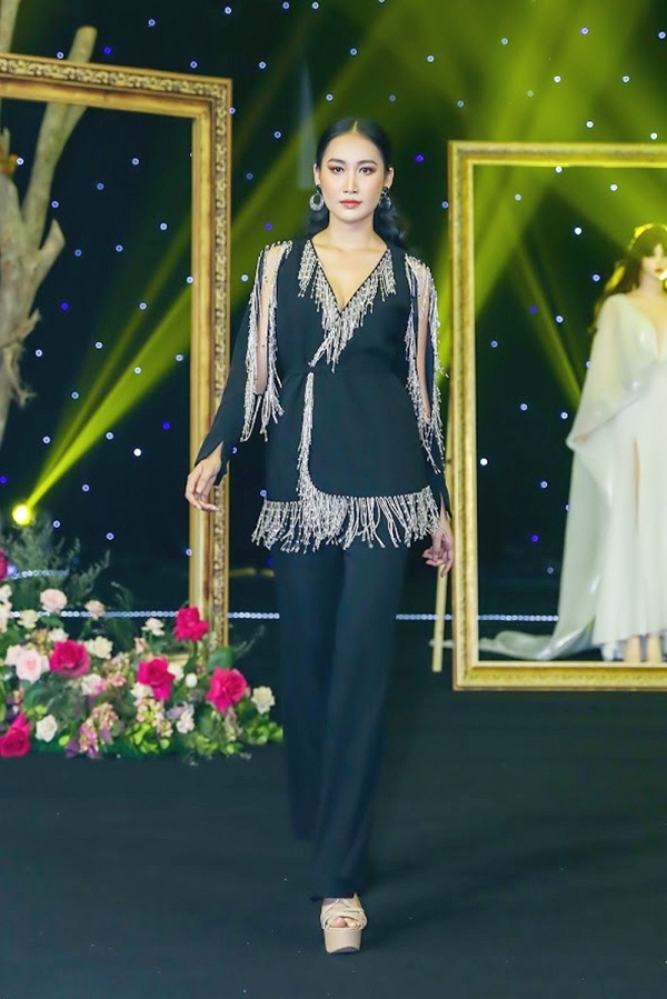 Ngoài kiểu dáng thiết kế hiện đại và sang trọng, Đêm Thu Huyền Ảo còn mang lại cho người mặc khí chất và thần thái của người phụ nữ quyền lực. Thể hiện qua việc sử dụng tông màu đơn sắc, tiết chế hoạ tiết, đem lại cho người mặc sự giải phóng cơ thể tối ưu.