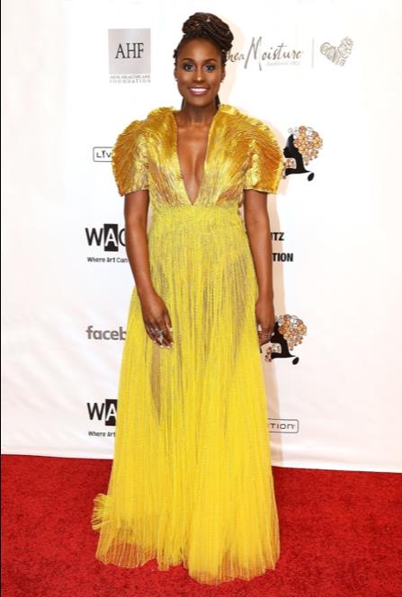Mẫu thiết kế mà Issa Rae lựa chọn .Nữ diễn viên kết hợp cùng tóc buộc cao và trang sức sang trọng