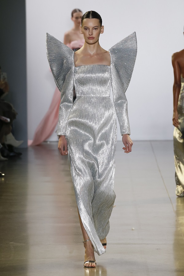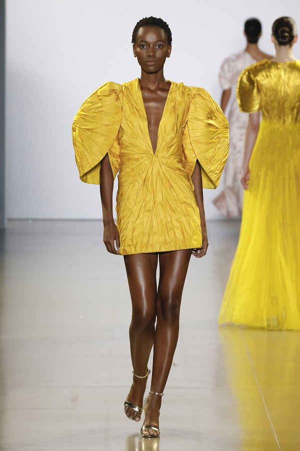 Nhiều thiết kế sử dụng kỹ thuật draping, dựng phom dáng 3D tạo nên những chiếc nơ với các cấu trúc hình khối chuyển động uyển chuyển khi model trình diễn. Bên cạnh đó các hình dáng tay phồng được cường điệu hóa với phiên bản lớn cũng tạo nên những điểm nhấn thú vị cho BST.
