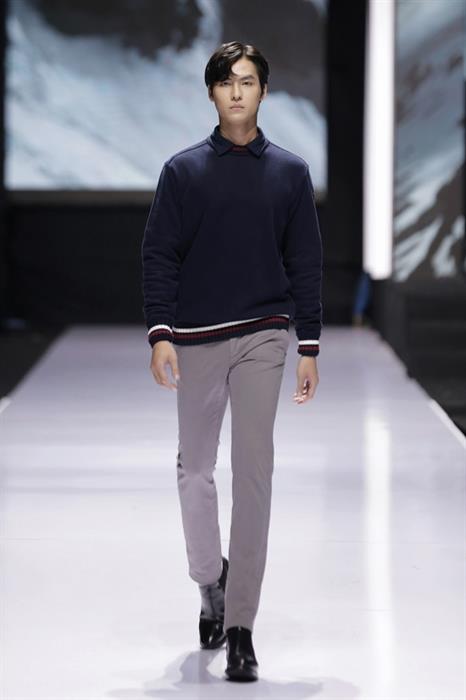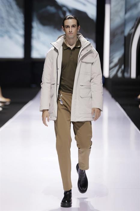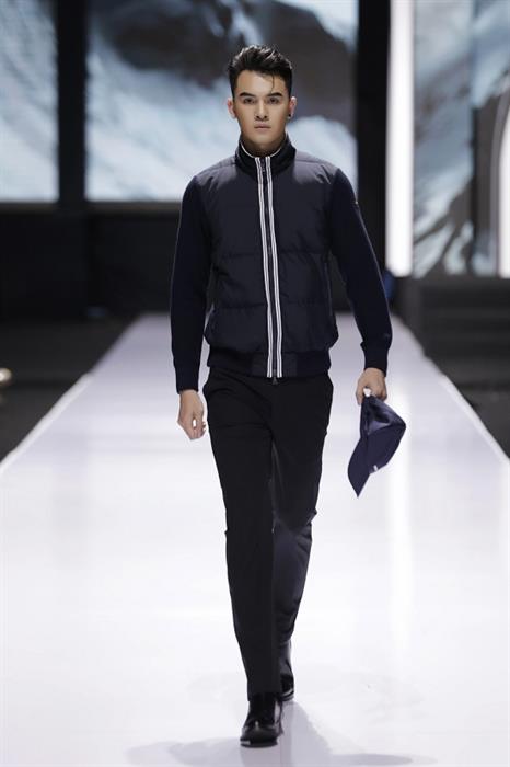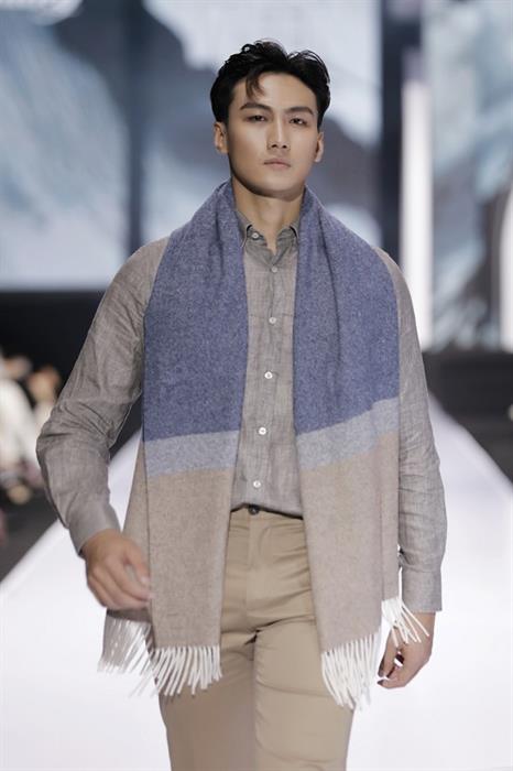 Đối lập với những đường băng đa sắc màu đến từ các NTK Việt Nam, những thiết kế thương hiệu Paul&Shark tạo điểm nhấn cho đêm diễn đầu tiên bằng việc tập trung khai thác triệt để tông màu trầm như xanh, đen, xám… Kết hợp với các phụ kiện khăn choàng, túi xách, bộ sưu tập đã gián tiếp mang đến giới điệu mộ không khí vừa se lạnh, vừa ấm áp của mùa thu đông. Tuy là những trang phục rất đời thường, mang tính ứng dụng cao, những thiết kế cuả nhà mốt nước Ý đã tạo nên sự đồng điệu, hòa lẫn vào thiên nhiên, gắn kết với chủ đề #TasteOfHeritage – Cảm hứng di sản xuyên suốt chương trình. Những bộ trang phục với chất liệu và đường nét tối giản được Paul&Shark mang đến sàn diễn của Aquafia Tuần lễ Thời trang Quốc tế Việt Nam Thu Đông 2022 đã tạo nên tiếng nói cho tinh thần luôn trân trọng yếu tố chân thực và gần gũi với thiên nhiên.