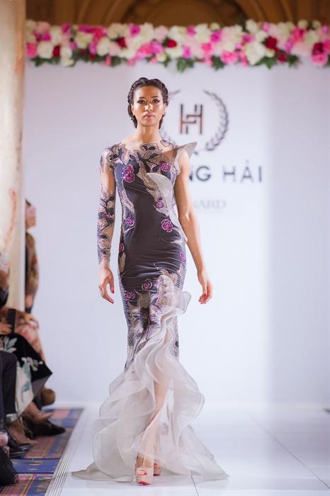 Tintuc - 35 mẫu váy mới nhất của NTK Hoàng Hải với chủ đề Les Etoiles De Cannes (Những ngôi sao Cannes) với sự trình diễn của nhiều người mẫu danh tiếng đến từ Việt Nam và người mẫu quốc tế đã thu hút sự chú ý đặc biệt của khán giả mộ điệu thời trang tại khách sạn InterContinental Carlton Cannes, cộng hòa Pháp.