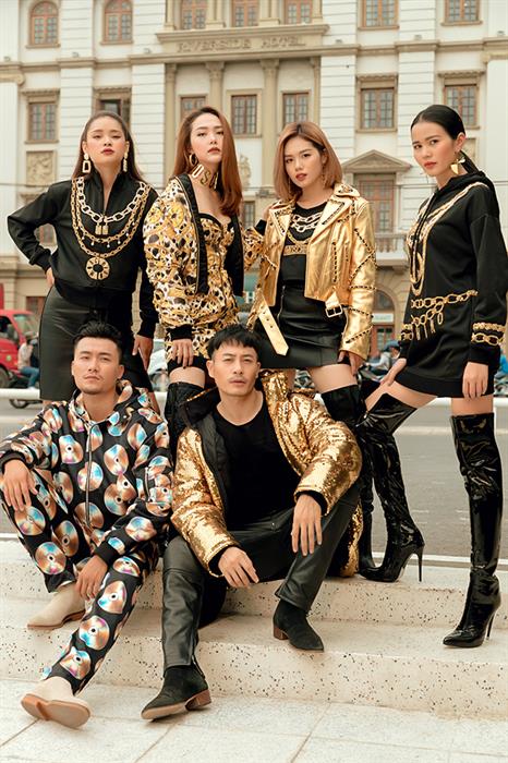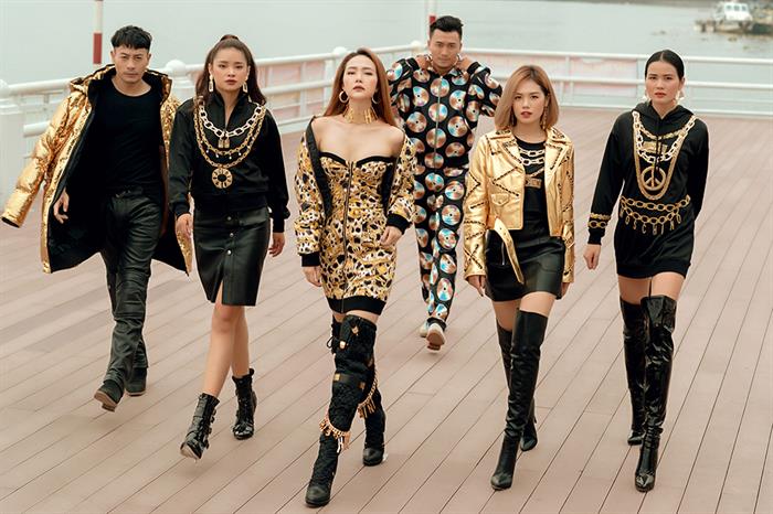 Trong trang phục đen và vàng của HMoschino, Minh Hằng và 5 thành viên team của mình gồm có Trâm Anh, Trương Thanh Long, H'Bella H'dok, Như Mỹ và Xuân Phúc đã thể hiện nổi bật những nét cá tính vốn có của từng người.