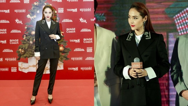 Tham dự buổi tiệc còn có HLV Minh Hằng. Cô chọn phong cách menswear tinh tế, sang trọng. Cùng xuất hiện trên sân khấu với Top 6, Minh Hằng đã có những chia sẻ về chuyến đi đến Israel.