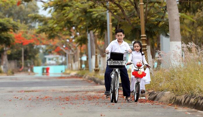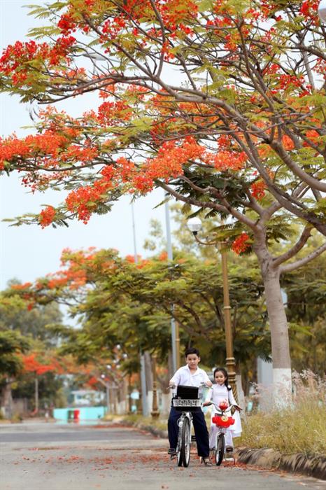Tintuc - Dưới ống kính của Nhiếp ảnh gia nổi tiếng Lý Võ Phú Hưng, hình ảnh mái trường tuổi học trò và Hoa phượng đã được khắc họa bởi cặp mẫu nhí “thanh mai trúc mã” vô cùng đáng yêu: Á quân Đại sứ Áo dài Việt Nam bảng Thiếu nhi Lê Gia Huy và Đỗ Hoàng Thiên Nga.