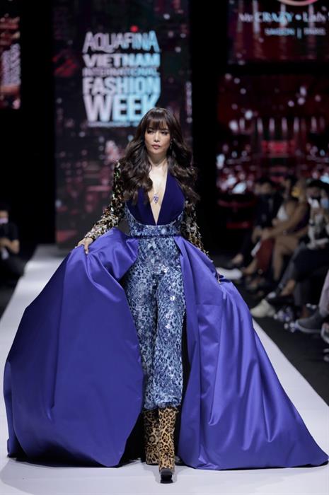 Á hậu Áo dài Chung Vũ Thanh Uyên xuất hiện trên sàn catwalk trong trang phục của Mr Crazy & Lady Sexy tại sự kiện VIFW 2020