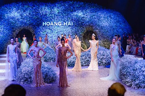Tại show thời trang Ngôn ngữ hoa diễn ra tại TP HCM, Hoàng Hải trình làng 100 mẫu đầm dạ hội cao cấp, được trình diễn bởi 50 người mẫu Việt. Với chủ đề Ngôn ngữ hoa, anh mong muốn mang những sản phẩm của anh sẽ đến gần với khách hàng, cũng như giới mộ điệu hơn.