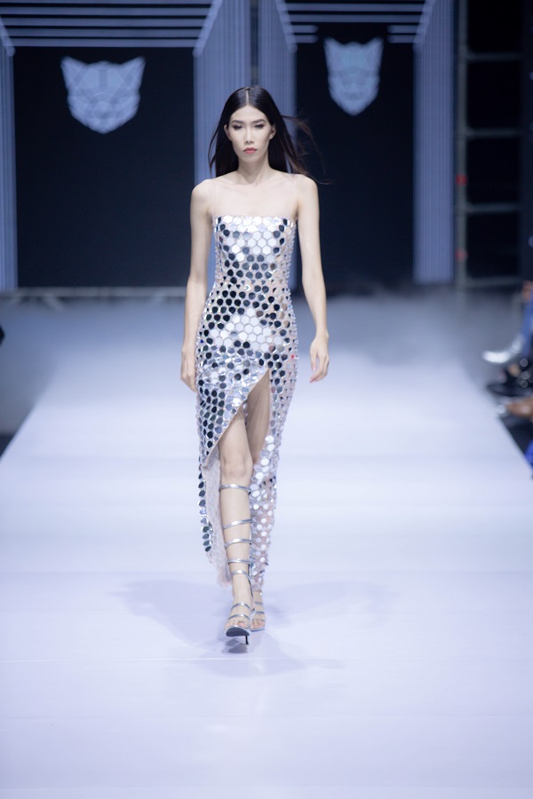 Các thiết kế được đính kết sequin, phủ glitter hay chế tác từ các chất liệu metallic đã không còn là xu hướng thời trang quá xa lạ đối với nhiều tín đồ sành mốt. Tuy nhiên, đến với Aquafina Vietnam International Fashion Week Xuân Hè 2019, chất liệu ánh kim đã có sự trở lại đầy ấn tượng khi xuất hiện trong các BST của những thương hiệu và NTK tên tuổi như Chung Thanh Phong, Frederick Lee, Lê Long Dũng, Đức Vincie, Minh Châu,… Trong đó, nguồn cảm hứng vị lai và âm hưởng cổ điển được nhiều nhà mốt tập trung khai thác khi kết hợp khéo léo cùng chất liệu nổi bật này.