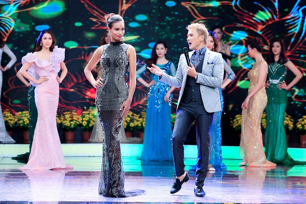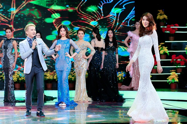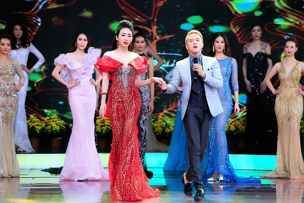 NTK Nhật Phượng chọn những gam màu rực rỡ, đầy sắc màu mang đến chương trình một phong cách thời trang độc đáo, đầy sắc màu tươi mới, hiện đại, trẻ trung, sang trọng và quý phái. Với những chất liệu kinh điển như voan, lưới, chiffon… Nhật Phượng kết hợp khéo léo với những viên pha lê lấp lánh và những đường may cắt cúp tạo nên phom dáng chuẩn dành cho các cô gái trong buổi dạ tiệc. NTK Nhật Phượng cho biết, mỗi bộ trang phục đều được các nghệ nhân may thủ công, đính đá tỉ mỉ từng công đoạn.