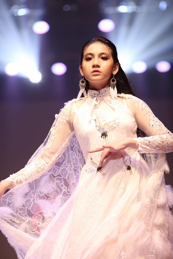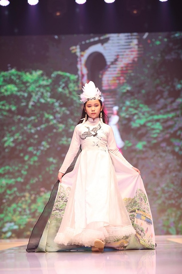 BST “Tiên Hạc” với gam màu chủ đạo là đỏ và trắng, được lấy ý tưởng loài chim hạc cao quý. Lấy cảm hứng từ loài chim cao quý – Tiên Hạc, NTK Phương Hồ đã khéo léo kể về câu chuyện thần thoại về loài chim cao quý ấy bằng âm thanh và màu sắc khi các thiết kế xuất hiện với phom dáng truyền thống nhưng không kém phần mới lạ cùng những đường cắt may tinh tế. Thêu tay và đính kết lông vũ cầu kỳ, bộ sưu tập mang đến sự mới lạ cho các bạn nhỏ. Với họa tiết thêu tay tỉ mỉ và những điểm nhấn trang phục được đính kết khéo léo bằng lông vũ cầu kỳ, BST mới nhất này của NTK Phương Hồ giúp các bạn nhỏ như được bay lên cùng những giai thoại về Tiên Hạc.