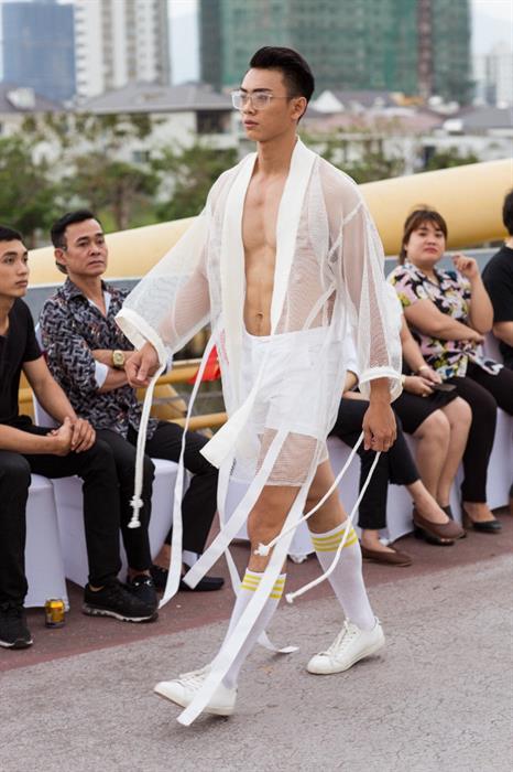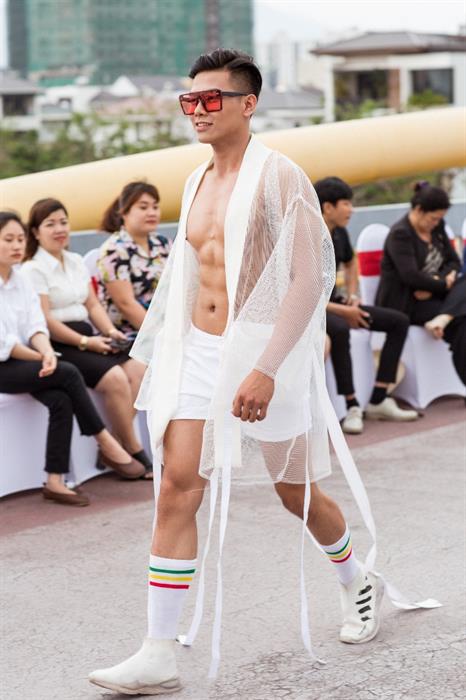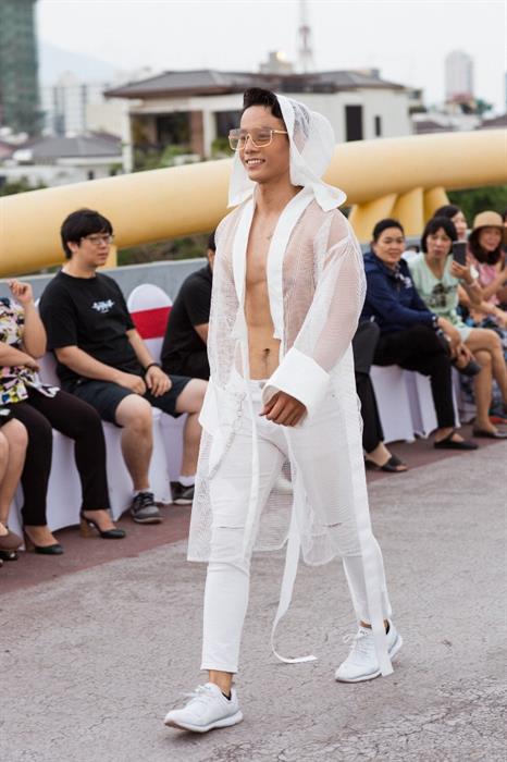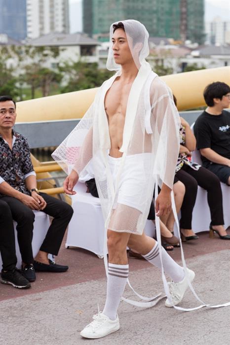 Vẫn trung thành với dòng trang phục ấn tượng dành cho sàn diễn BST My Style - Hot Summer 2019, sử dụng chất liệu lưới với gam trắng làm chủ đạo, kết hợp với dây đai tạo nên sự bay bổng phóng khoáng . Các mẫu trang phục được các nam người mẫu có hình thể chuẩn 6 múi trình diễn trên sàn catwalk là cầu đi bộ Nguyễn Văn Trỗi (Đà Nẳng) tạo nên một không gian vô cùng mới lạ thể hiện sự sáng tạo mang tính trẻ trung và hiện đại.