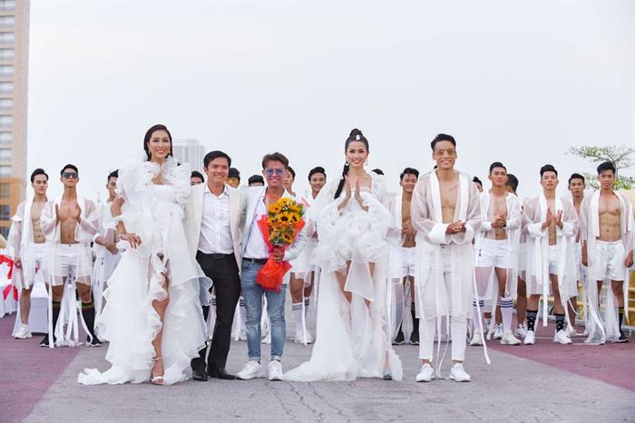 Nhà thiết kế - Đạo diễn thời trang Tạ Nguyên Phúc đã mang đến bộ sưu tập sắc trắng ấn tượng với chất liệu voan mỏng kiểu dáng phá cách cho cả nam và nữ với chủ ý tuy khoác lên mình những bộ trang phục cách tân cầu kỳ nhưng các bạn thí sinh vẫn toát lên được thần thái và quan trọng hơn nữa đó là những nét cắt ngang vạm vỡ, những đường cơ săn chắc vẫn có thể hiện diện rõ nét và thiêu đốt mọi ánh nhìn.