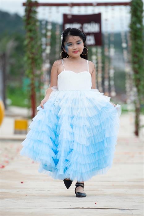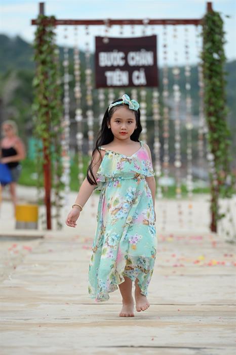 Đặc biệt, màn biểu diễn hóa thân thành nàng tiên cá đại dương đánh đổi chiếc đuôi của mình để có được đôi chân và sải những bước chân catwalk trong một chiếc váy dạ hội vô cùng lộng lẫy của cô bé mẫu nhí Kitty Thiên Kim đã gây dấu ấn mạnh mẽ và khép lại một show diễn thành công của Hội Hè Mẫu Nhí năm nay.