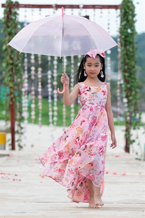 Mở màn là bộ sưu tập “Mùa hè năng động” đến từ thời trang trẻ em Amprin với những bộ trang phục thoải mái, vui tươi và đầy màu sắc, được thiết kế phù hợp với sự năng động của các bé. Cô bé mẫu nhí LyLy Yến Oanh vừa catwalk vừa tung khăn lụa đầy ấn tượng để kết lại màn biểu diễn đầy náo nhiệt này.