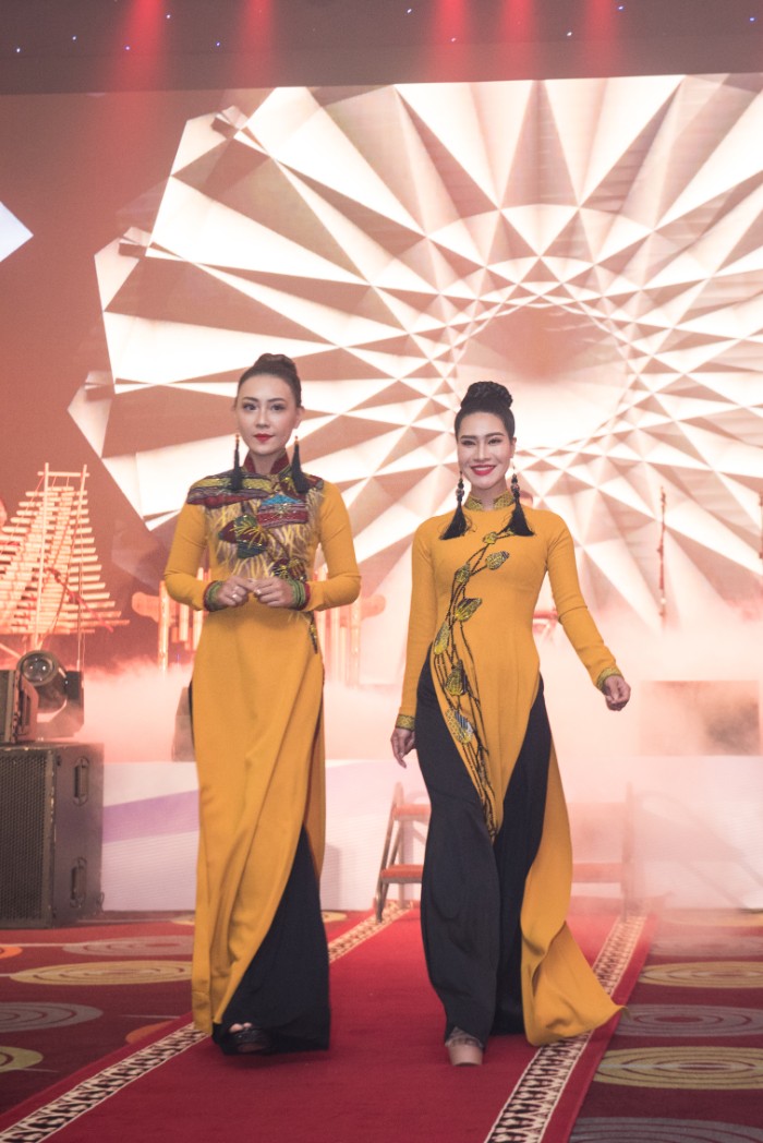 Với chất liệu thổ cẩm được dệt tay từ chất liệu tơ tằm mềm mịn hay chất liệu từ núi rừng và nghệ thuật dệt tay tinh xảo, kết hợp với công nghệ rập 3D cùng nghệ thuật kết hạt thủ công làm cho chiếc áo thêm sự kỳ công mà lộng lẫy.