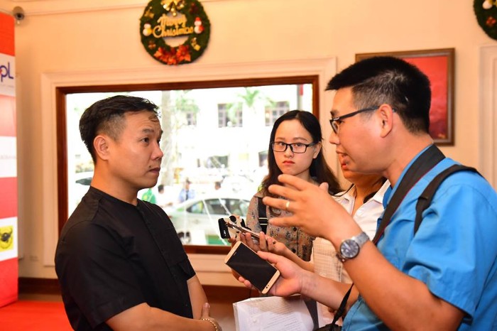 NTK Việt Hùng trả lời phỏng vấn của báo chí tại cuộc họp báo lễ hội văn hóa thổ cẩm Việt Nam