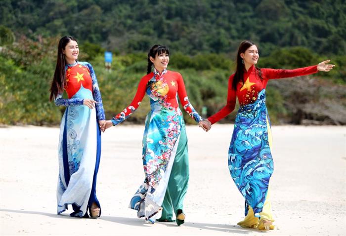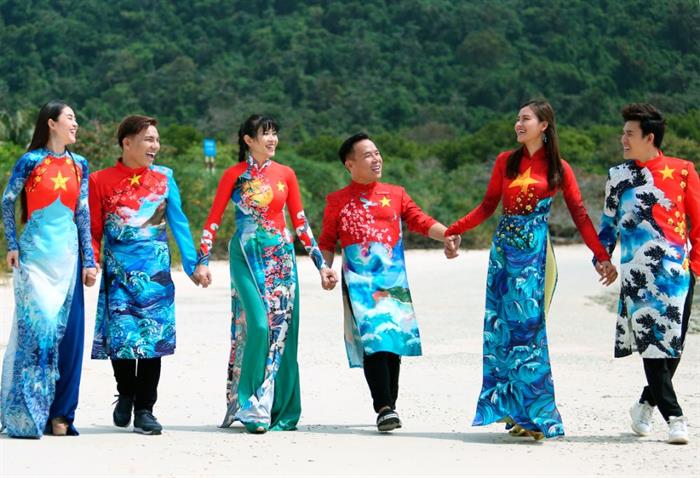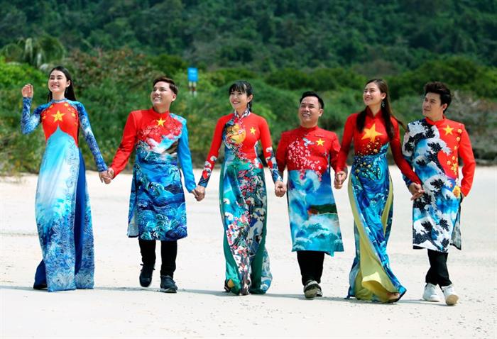 Tintuc - Dưới ống kính của Nhiếp ảnh Phan Thanh Việt, trong BST Áo dài “Mùa xuân biển đảo” của NTK Việt Hùng, MC Quỳnh Hoa, Miss eath Vietnam Hoa Thái, Lý Kim Thảo, NTK Việt Hùng, MC Phùng Thế Phi và Đạo diễn Nguyễn Bảo như tan chảy giữa thiên nhiên hoang sơ, kỳ vĩ của Hòn Bảy Cạnh – Côn Đảo.