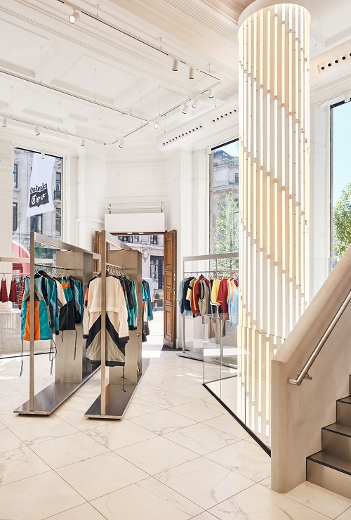 Cửa hàng có diện tích khoảng 864 m2 gồm 2 tầng với phần nội thất chủ yếu là đá cẩm thạch, tạo nên một không gian cực kỳ rộng rãi. Tất cả các BST đều được trưng bày ở tầng trệt. Tầng hầm là không gian nghệ thuật và sáng tạo dành cho các nhà thiết kế địa phương cũng như các nghệ sĩ toàn cầu để tham quan, khám phá và kết nối thương hiệu với tinh thần, văn hoá của Luân Đôn.