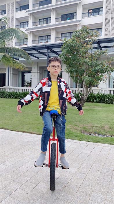 Mẫu nhí đặc biệt là trẻ tự kỷ mặc đồ của NTK Huu Anh Zoner, trình diễn thời trang trên xe đạp 2 bánh.