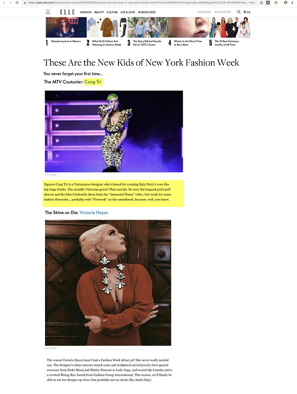 Tintuc - Tạp chí Elle của Mỹ đã tôn vinh những NTK sẽ trình diễn ở New York Fashion Week 2018 và có dành “cơn mưa” lời khen cho Công Trí.