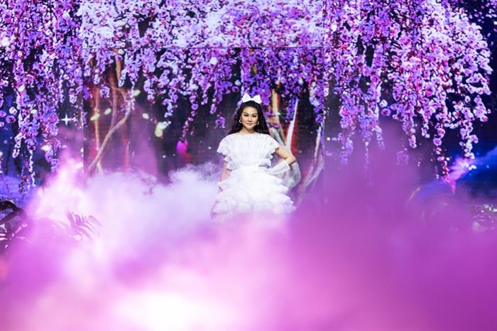 Xuất hiện trong khung cảnh thơ mộng không khác gì chuyện cổ tích, Thanh Hằng khoác lên mình chiếc đầm xếp tầng bồng bềnh sắc trắng tinh khôi khoe vẻ đẹp ngọt ngào lôi cuốn mọi ánh nhìn. Không còn vẻ sắc lạnh như những lần trình diễn khác, Thanh Hằng vào vai công chúa đã liên tục nở nụ cười tươi tắn làm bừng sáng cả sàn diễn. Hiện tại, "chân dài 1m12" đang tập trung chuẩn bị cho bộ phim Quỳnh Hoa Nhất Dạ sẽ được bấm máy trong thời gian tới.