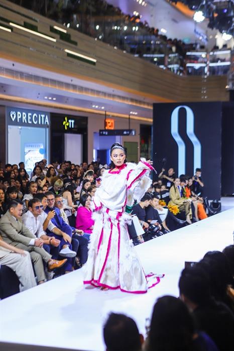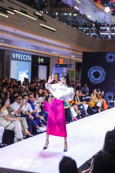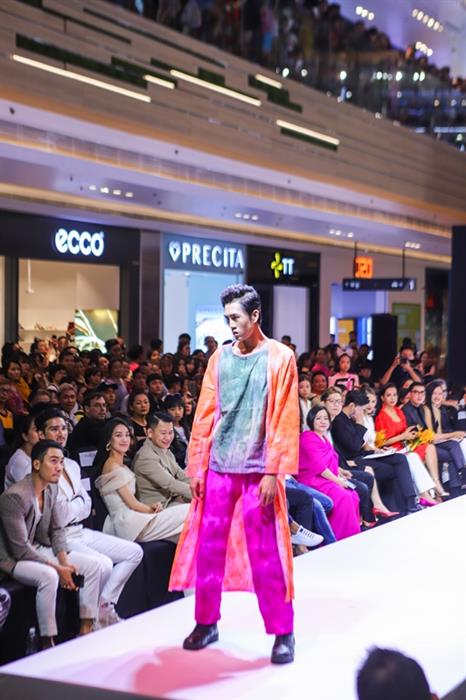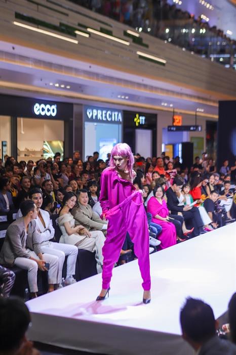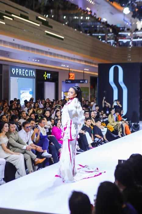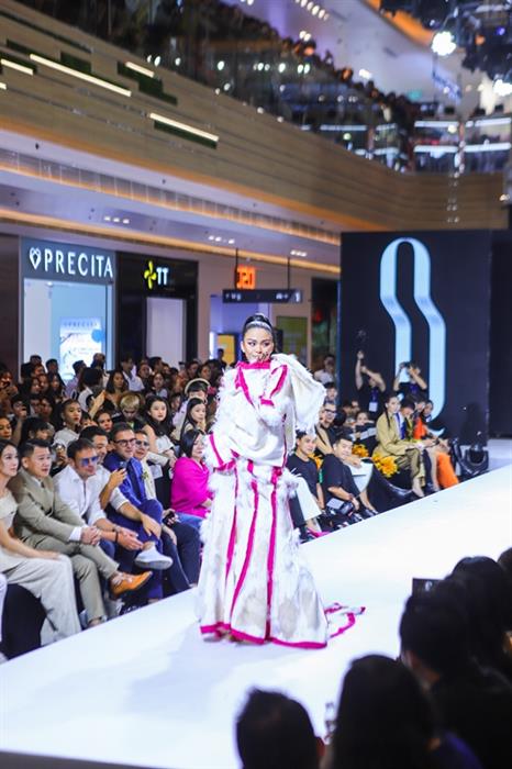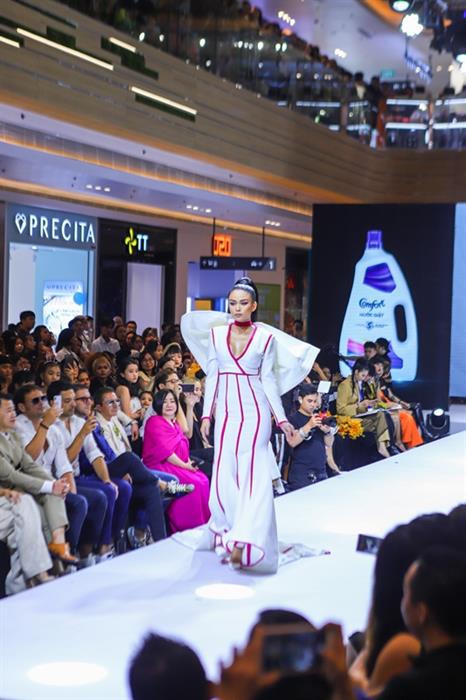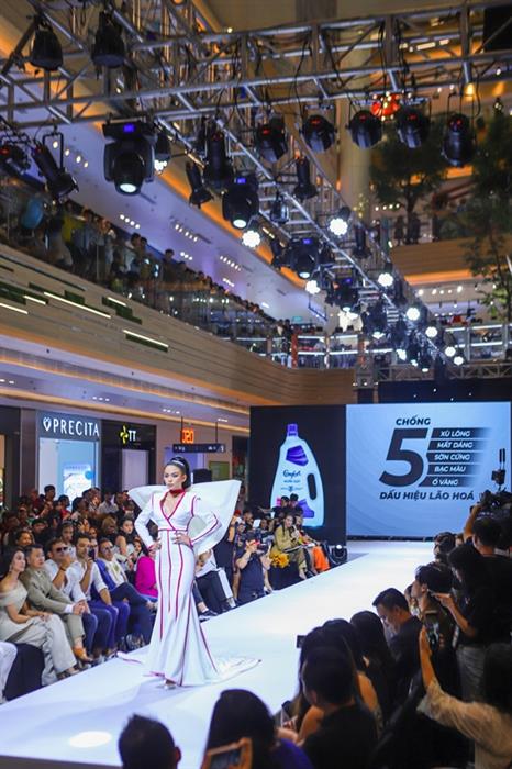 Kết thúc màn trình diễn này, quán quân Vietnam’s Next Top Model 2013 – Á hậu 2 Hoa hậu Hoàn Vũ Việt Nam 2017 Mâu Thủy xuất hiện trong vai trò vedette và trổ tài calk của mình. Cuối sàn catwalk, Mâu Thủy bất ngờ thay trang phục và trở lại với một diện mạo lộng lẫy hơn. QGC – thời trang kỳ quặc thực chất không có thật. Đây là một “câu đố” khi QGC chính là từ viết tắt của thông điệp “Quên Giặt Comfort”.